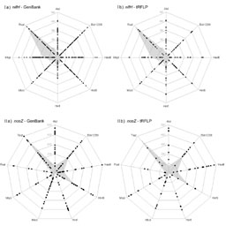 Figure 5: The occurrence of SSU tRF polygons related to those from either Azospirillum brasilense, Escherichia coli or Rhizobium leguminosarum.